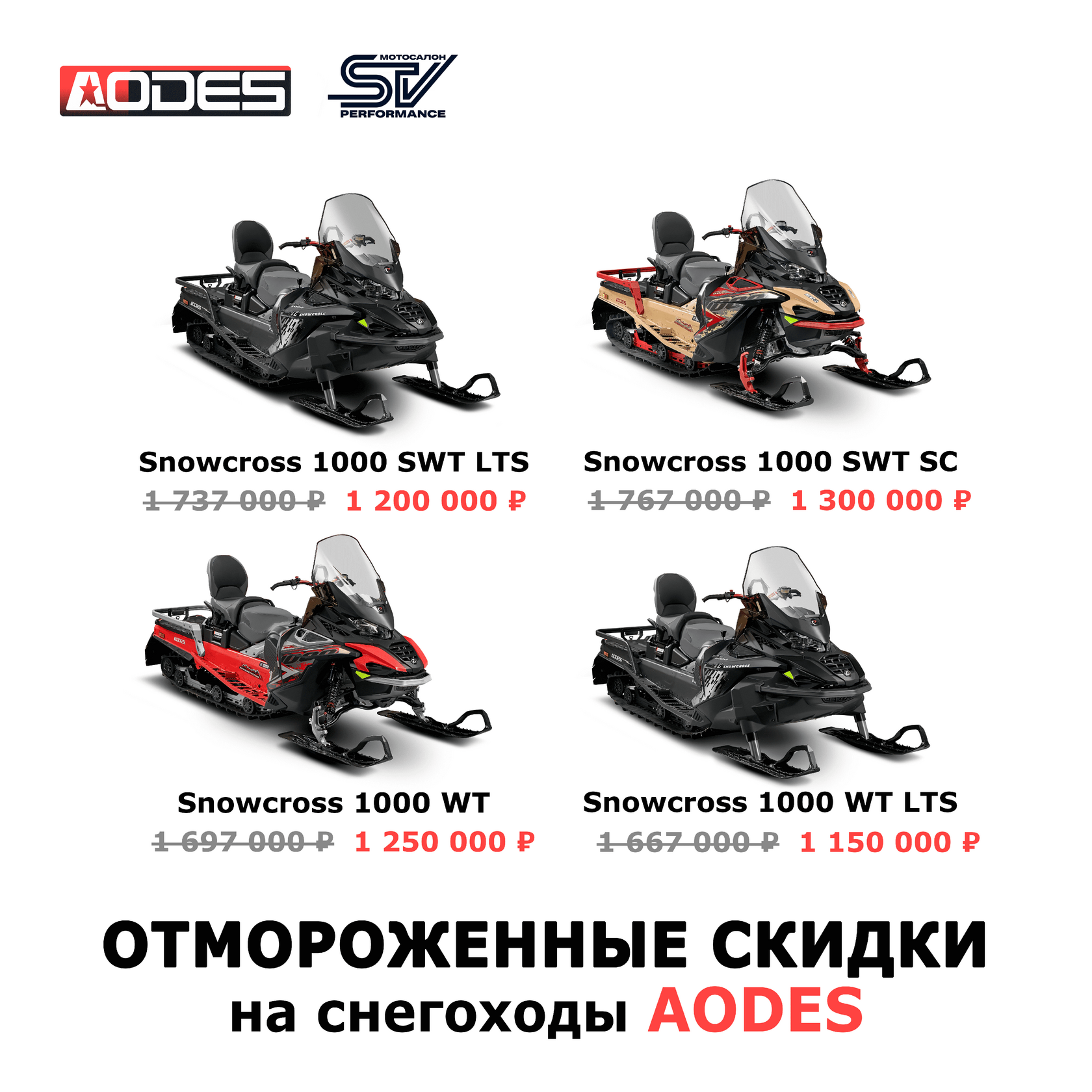Зима в самом разгаре, а мы решили «заморозить» цены на экстремально низком уровне. Встречайте акцию «Отмороженные скидки» на всю линейку снегоходов AODES Snowcross 1000 Ваша выгода — до 537 000 рублей!*